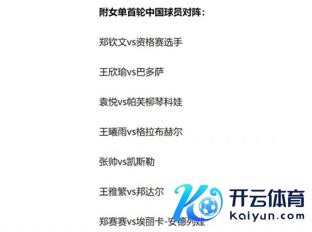 实现抽签之前,本年澳网悉数 7 位中国金花出战正赛,除了郑钦文以外,其他中国球员首轮对阵情况如下: