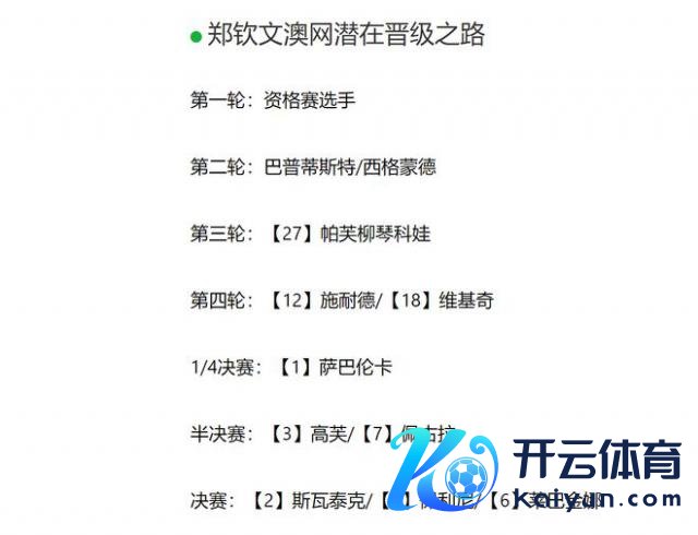 先来望望郑钦文的潜在晋级之路:
