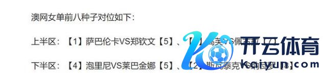北京时候 1 月 9 日中午,2025 赛季澳网女单抽签对阵效果,夺冠热点之一的郑钦文气运欠安,跟卫冕冠军萨巴伦卡同个 1/4 分区,两东谈主有可能八强战提前相逢,这确切下下签。除了郑钦文以外,其他中国金花的签表通常很差,亦然激勉了国内网友的热议。