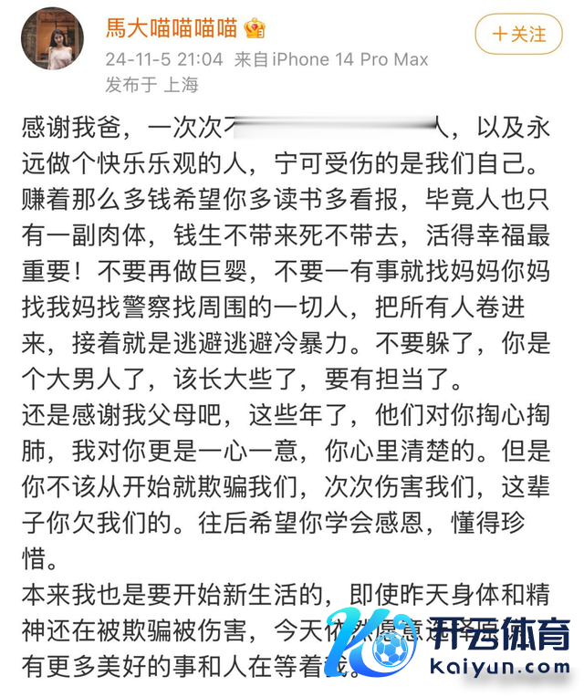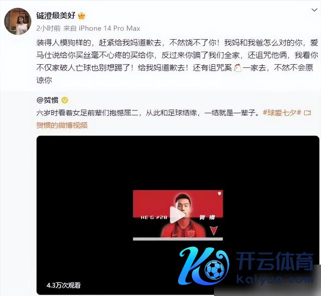这位女子在视频中对贺掼的丑行进行了控诉,并暗示我方会将我方所受的伤害平缓呈现给全球,控诉贺掼不仅在情谊上对她“东说念主模狗样”,对她关爱有加,自后却从没爱过她,还对她和她的家东说念主进行了伤害。