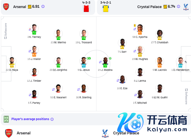 水晶宫首发:1-迪恩-亨德森、58-克波哈(46’17-克莱因)、27-查洛巴、5-拉克洛瓦、6-格伊、3-米切尔、8-莱尔马、19-威尔-休斯(80’55-德文尼)、7-伊斯梅拉-萨尔、10-埃泽、14-马特塔(59’9-恩凯提亚)。