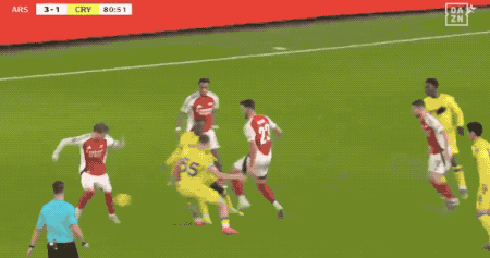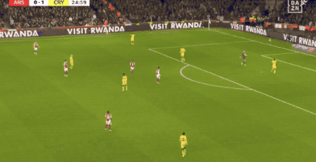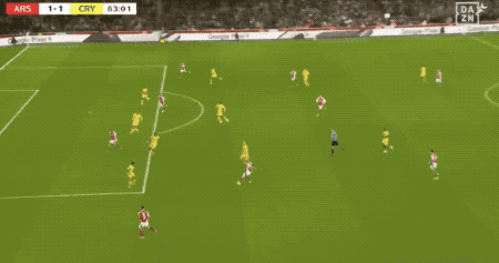 第54分钟,厄德高的直塞穿透了整条水晶宫的防地,躲过查洛巴的铲抢,挑射破门。