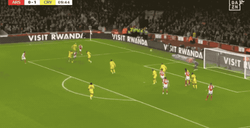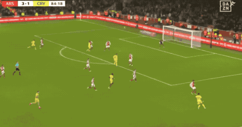 第52分钟,阿森纳握续围攻水晶宫的球门,梅里诺的远射略微偏出。